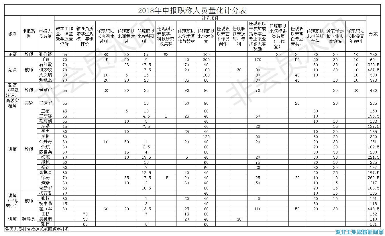 根据《356体育在线官网专业技术职务任职资格评审办法(试行)》、《356体育在线官网职称评审量化计分办法(修订)》文件规定,学院职改办(人事处)组织相关职能部门进行量化评分核定,现将孔祥银等31位同志量化评分结果及个人申报推荐评审综合材料一览表予以公示。
