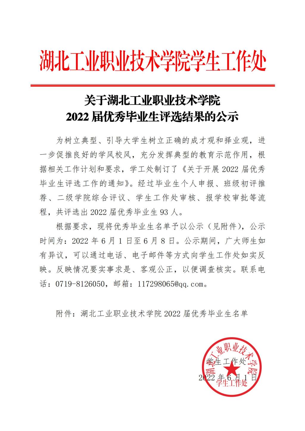 关于356体育在线官网2022 届优秀毕业生评选结果的公示