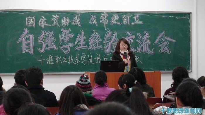 1229日,旅游与涉外事务系全体学生齐聚2409教室,倾听20名同学在学习和生活实践中自立自强的经验介绍,院长助理、学工处长肖海华、副处长陈桂巧、团委副书记张玲等出席了会仪。