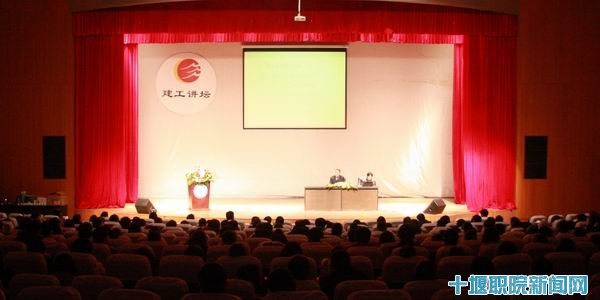 会议由十堰日报社总编辑李东辉主持,副院长唐大超、十堰日报社党委书记、社长叶章胜发表致辞,对“建工讲坛”首期讲座暨十堰2010年房地产行业经营年会表示祝贺,并希望通过校内外权威专家、知名学者、成功企业家们深入浅出的演讲,把 “建工讲坛”建成一个开拓学生的视野,深化学生对科学的理解,提高学生综合素质的重要窗口,成为让学生终身受益的课堂。
