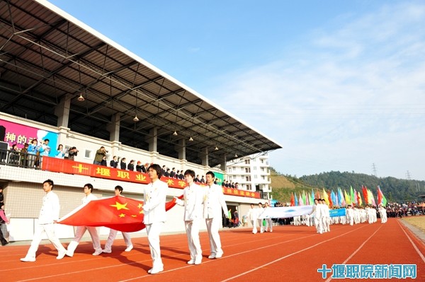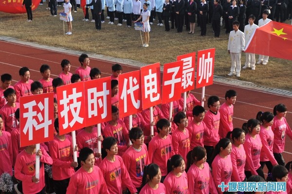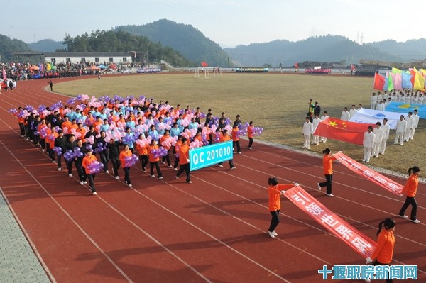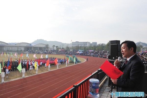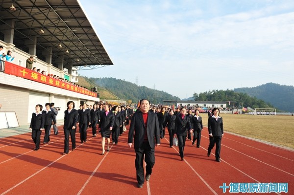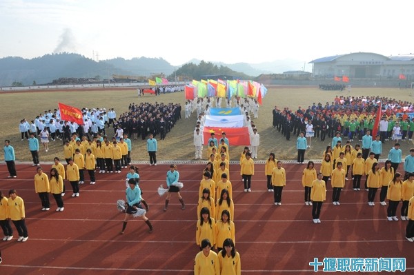 伴随着激昂的运动员进行曲,教工代表队、各系运动员代表队和裁判员迈着整齐的步伐经过主席台,接受领导的检阅。国旗、校旗、运动会会旗在校园上空冉冉升起。运动会组委会主任、院长魏文芳发表了热情洋溢的讲话,他指出,运动会是对平时同学们体育活动的一次大检阅、大验收,是大力推行素质教育、提高学生身体素质的重要举措。他对运动员、裁判员以及全体师生提出了要求,希望通过运动会进一步推动我院体育运动的蓬勃开展,让同学们成为学习好、身体捧、德技双馨全面发展的优秀人才。在热烈的掌声中,魏院长宣布:十堰职业技术学院第22届秋季田径运动会开幕!