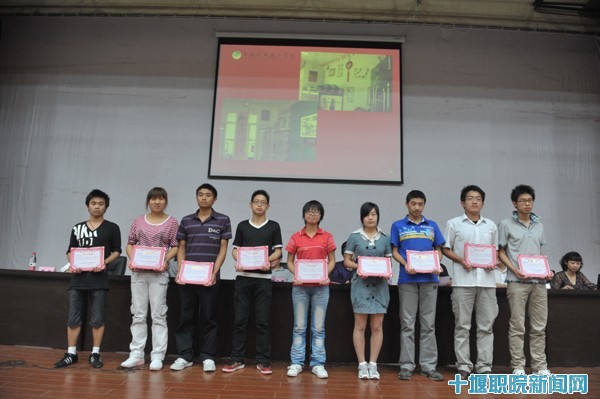 院长助理、学工处处长肖海华宣读了《2010年度宿舍文明创建活动表彰决定》,经济贸易系、电子工程系荣获宿舍文明创建“先进集体”;机电3207等9个宿舍获得“文明宿舍标兵”;生化5731等9个宿舍获得“文明宿舍”称号;建筑5707宿舍张东月等9人获得“优秀宿舍长”;何西海等6人被评为“先进个人”荣誉称号。与会领导为获奖宿舍及个人颁奖。