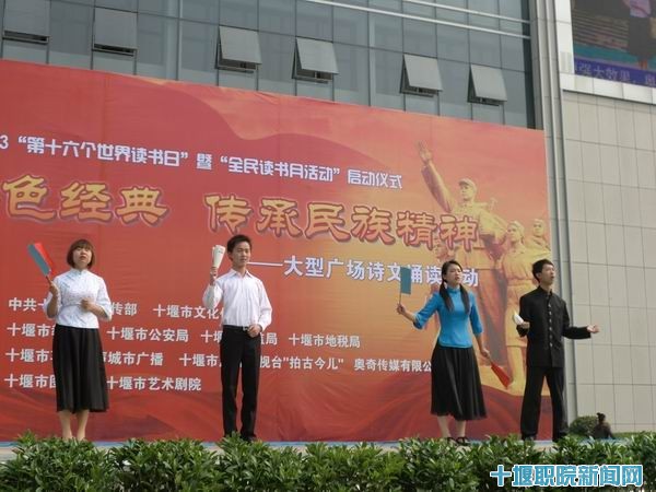 在此次活动中,我院四名领读同学朗了臧克家的《有的人》,我院学生方阵与其他方阵齐诵了《长征》、《有一首歌》、《我有一个强大的祖国》。现场气势宏伟,方阵各具特色。这次活动是为了纪念建党九十周年和辛亥革命胜利一百周年,颂扬在党领导下中国所取得的辉煌成就,缅怀党的光荣历史,歌颂党的丰功伟绩,激励各级党组织和广大党员勇于开拓,奋发进取,为全面实现我市“十二五”规划所确定的各项目标提供强大的精神动力。这次活动由市委宣传部、市文化体育局主办,市教育局、市公安局、市工商银行协办,市图书馆、市群众艺术馆承办。