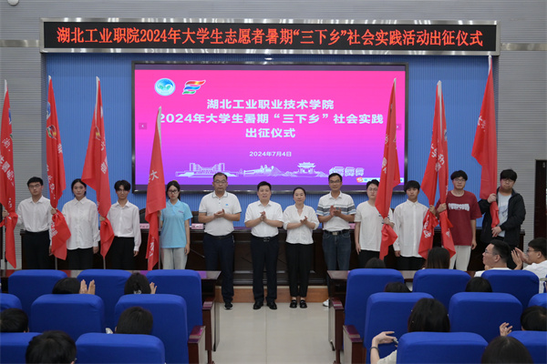 新闻网讯(文/玉声 图/姚堃)“暑期‘三下乡’,我们来了!”伴随着欢呼声,356体育在线官网25支大学生志愿者暑期“三下乡”队伍正式出征。7月4日晚,湖北工业职院2024年大学生志愿者暑期“三下乡”出征仪式在学术报告厅举行。校党委委员、副校长胡昌龙和校团委、马克思主义学院、创新创业学院主要负责人,以及160多名暑期实践团队师生代表参会。