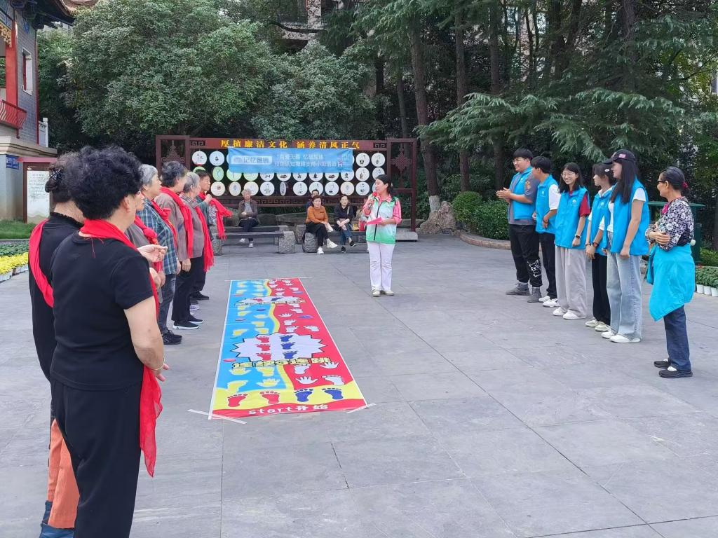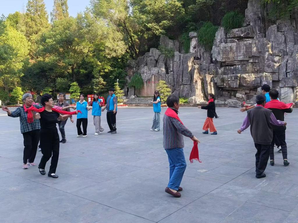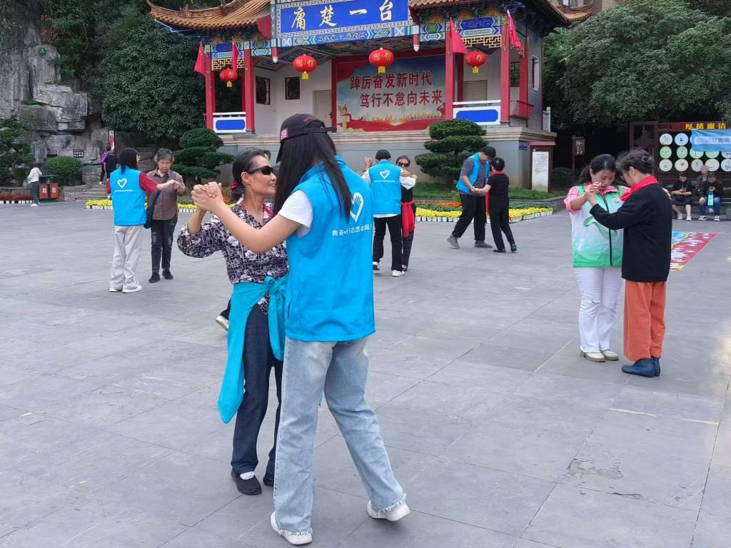 此前,还有356官网青春e行志愿者服务队于10月9日协助惠湾社区工作人员在十堰市人民公园开展“有爱无碍,亿起加油”的活动,陪伴老人们在人民公园登高望远、赏菊、唱红歌、跳舞等,为老人送上重阳节的糕点,帮助他们拍照留念。