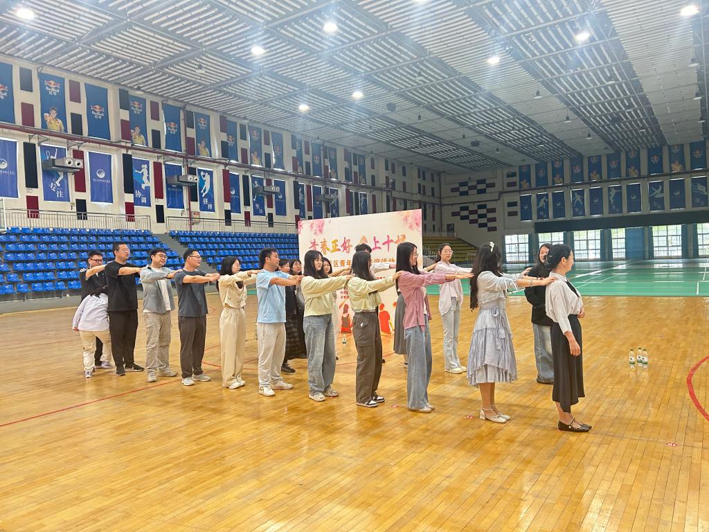 现场精心设计了多个互动游戏:“听口令抢水”考验默契,“穿山洞”拉近距离,“抢凳子”引爆欢笑。在“趣味问答”环节,青年们踊跃分享兴趣爱好,现场掌声不断。最受欢迎的惩罚环节——“正反转圈”“青蛙跳”更是让气氛瞬间活跃,陌生感在笑声中悄然消散。