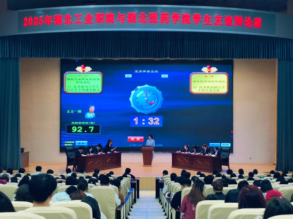 本场辩论赛正方356体育在线官网代表队以“AI技术将为大学生创造更多的就业机会”立论,反方湖北医药学院代表队则以“AI技术将加剧大学生的失业危机”展开辩驳。双方紧扣AI技术对传统岗位的替代效应与新兴岗位的创造动能,结合社会现状,从技术伦理、职业重构、教育适配等多重维度,激辩AI时代下青年学生就业的破局之路。辩手们逻辑严密、攻防有序,既有数据支撑的理性论证,也有贴近现实的案例剖析。现场金句频出,掌声不断。