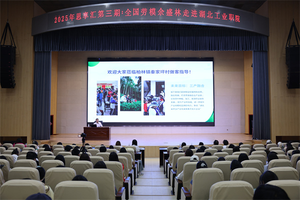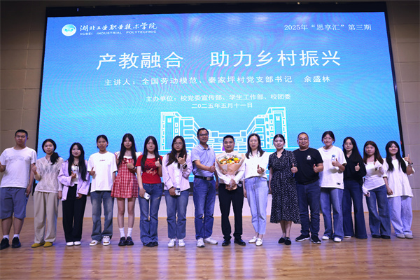 新闻网讯(文/李晓璇 图/李鑫)“简单的事情重复做,重复的事情用心做。力争把简单的事情做得不简单,把平凡的人生活出不平凡……”在2025年职业教育活动周来临之际,5月11日下午,第三期“思享汇”在和山会堂开讲。全国劳动模范、356官网2019届校友、十堰市张湾区柏林镇秦家坪村党支部书记余盛林受邀为师生带来了一场主题为《产教融合——助力乡村振兴》的精彩宣讲,引发了大家对高职教育与乡村发展融合的深入思考。校党委委员、副校长李爱萍,学校相关职能部门负责人,生态环境学院、旅游商贸学院师生代表参加了此次活动。