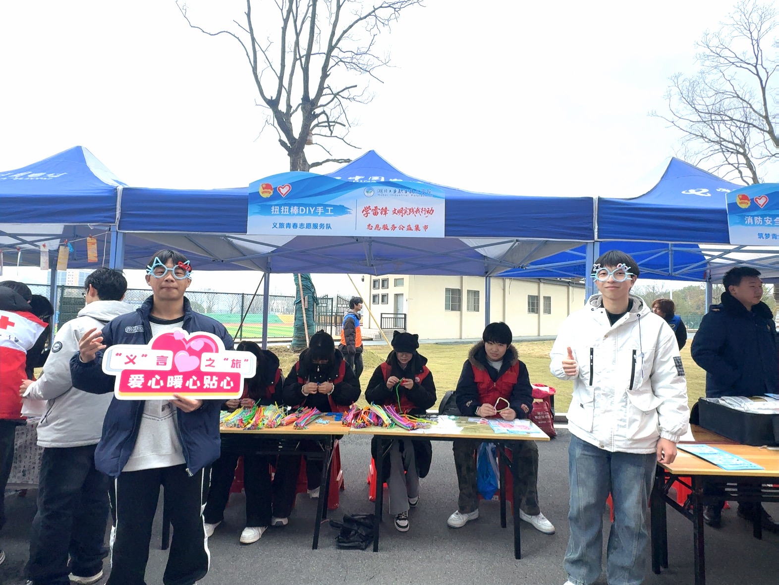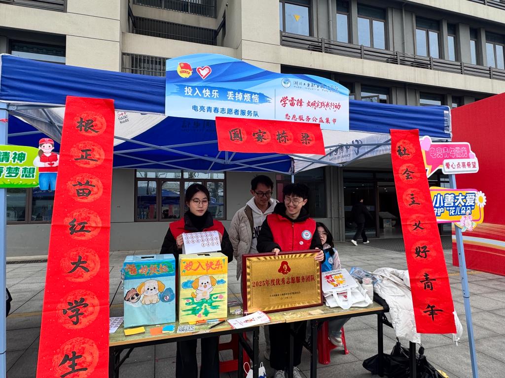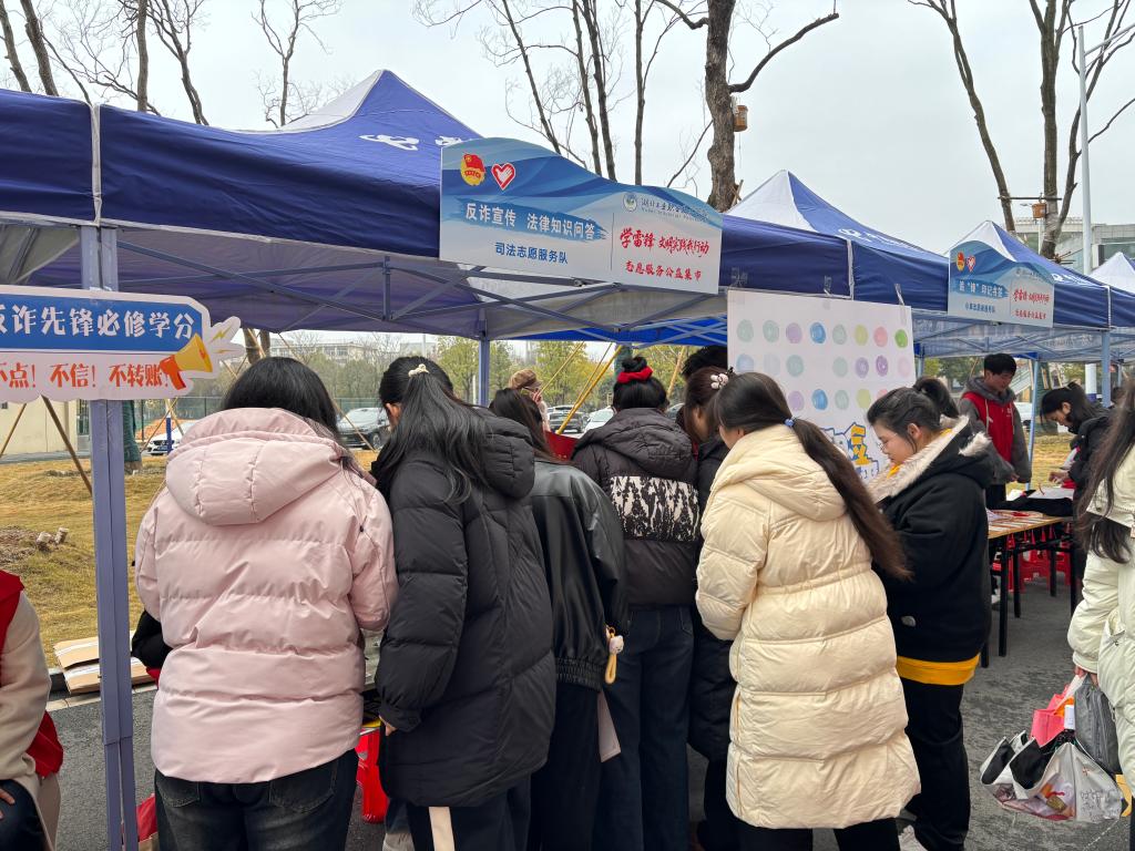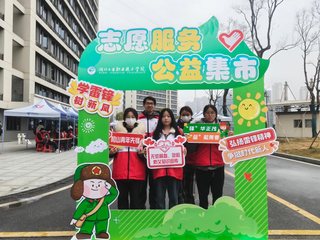在温暖感人的合唱《奉献》中活动进入尾声,与会领导与师生代表合影留念后,共同参观了现场同步举行的志愿服务公益集市。集市上,各二级学院与志愿服务队纷纷亮出“看家本领”,结合专业特色开展消防器材展示、车辆检测维修、电脑系统维护、文创作品制作、反诈知识答题、无偿献血宣传、健康义诊等便民服务和互动体验,用实际行动诠释了新时代雷锋精神,也为三月的湖工职院校园增添了一抹亮丽的“志愿红”。